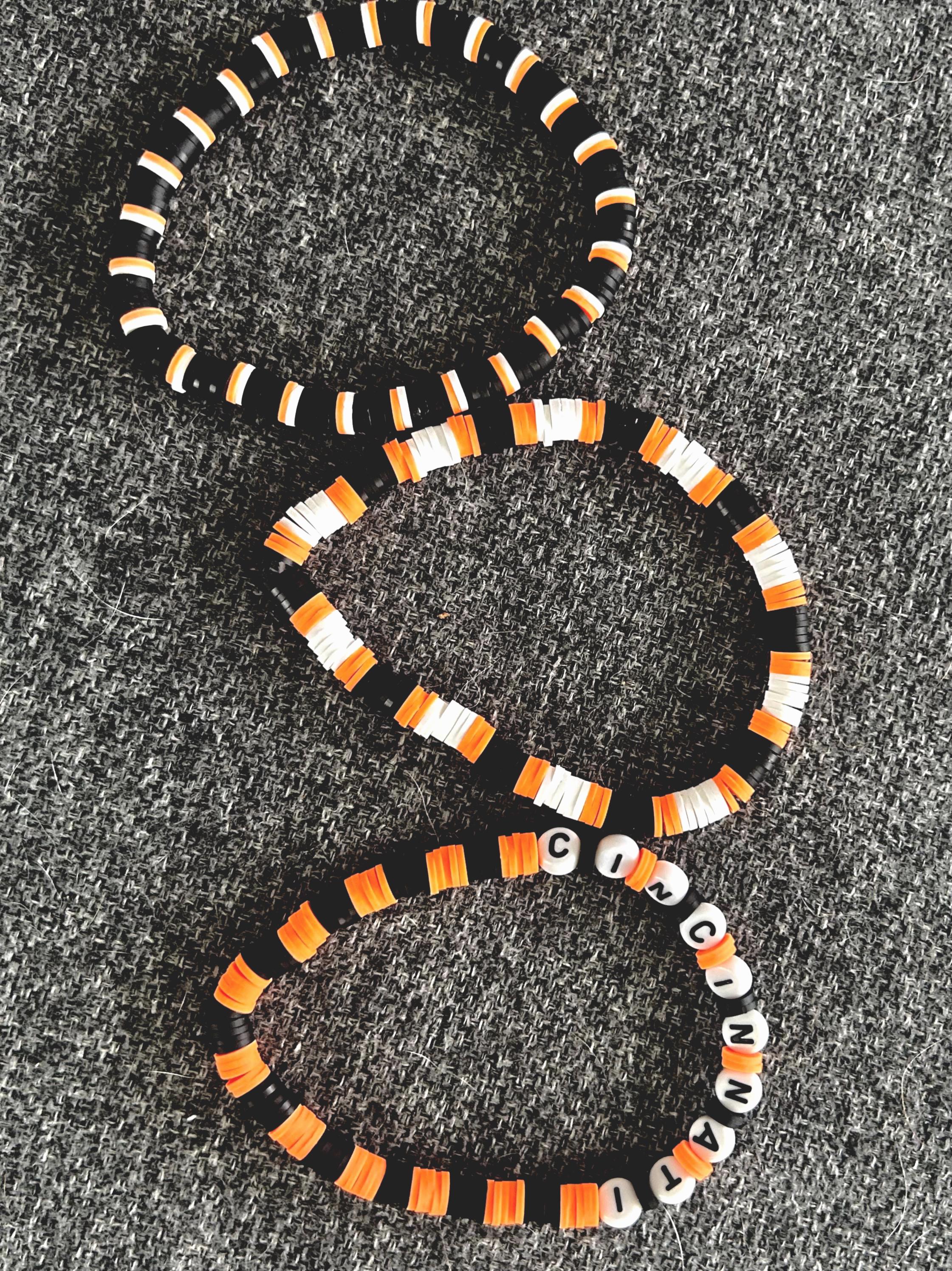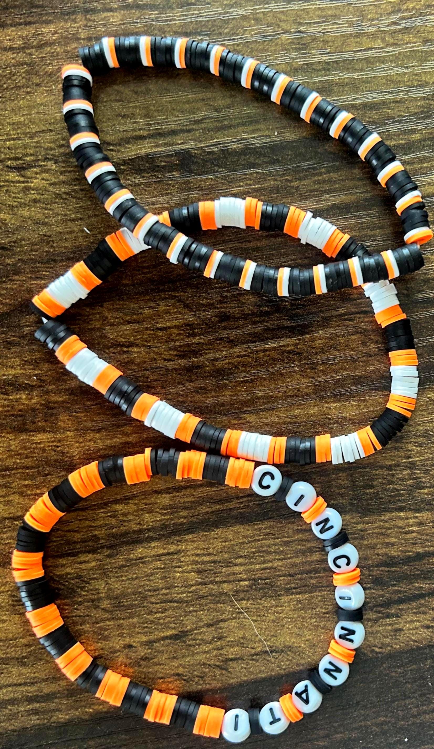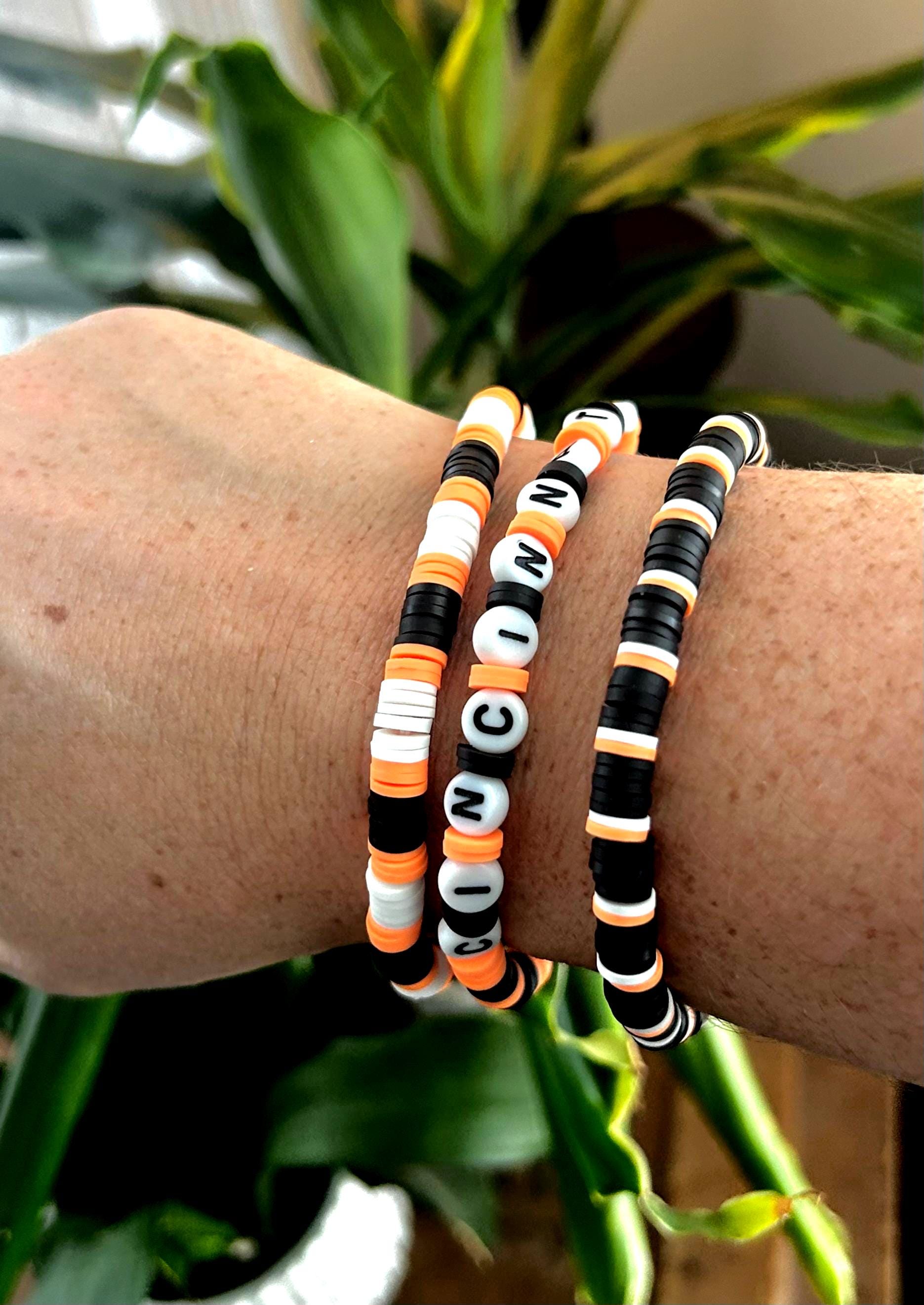 Fun handmade heishi beaded bracelet set. Made elastic strong with a loose comfortable fit for whatever party or event you plan to attend. Will make a great gift for that special person! Pictured size is a loose 7 inch fit.