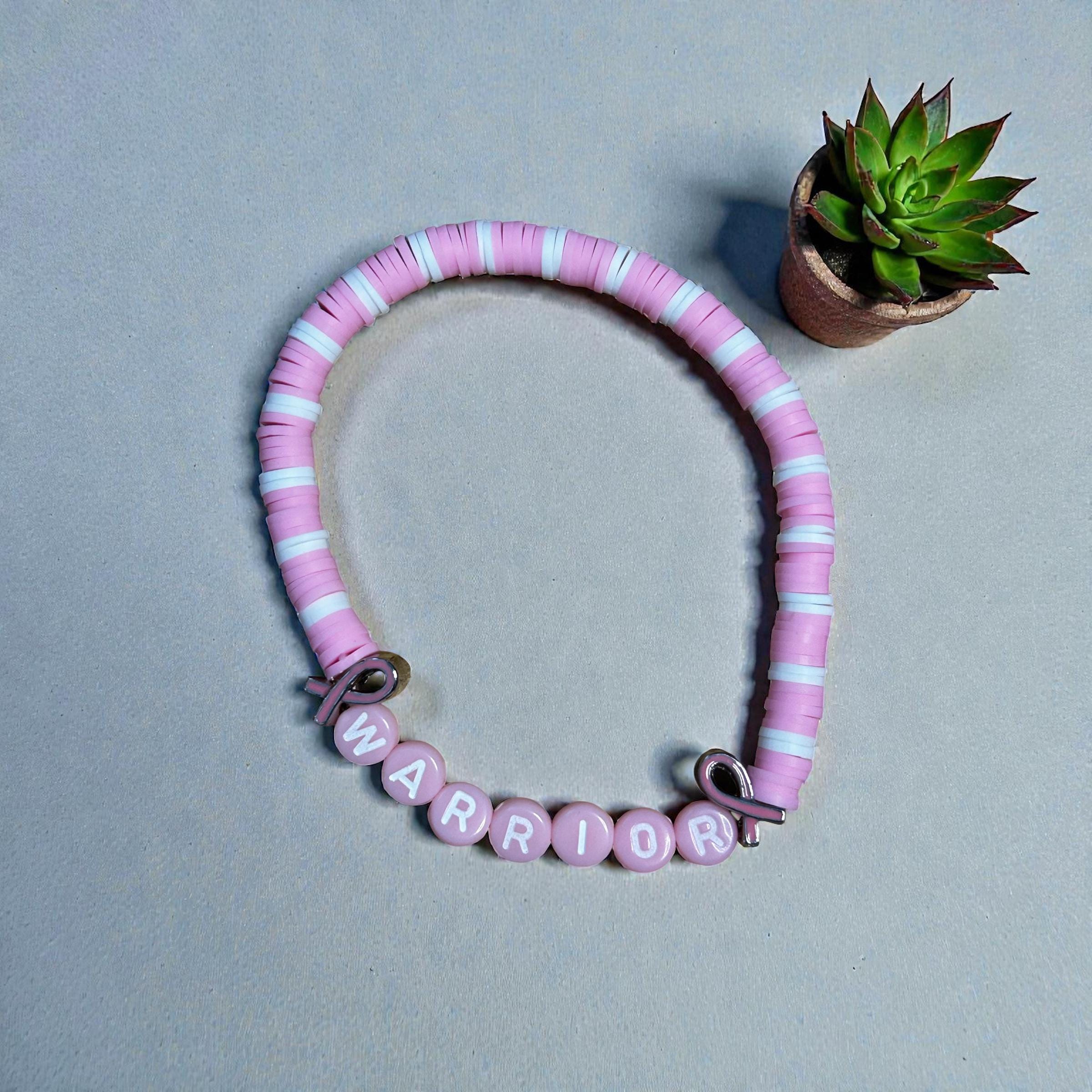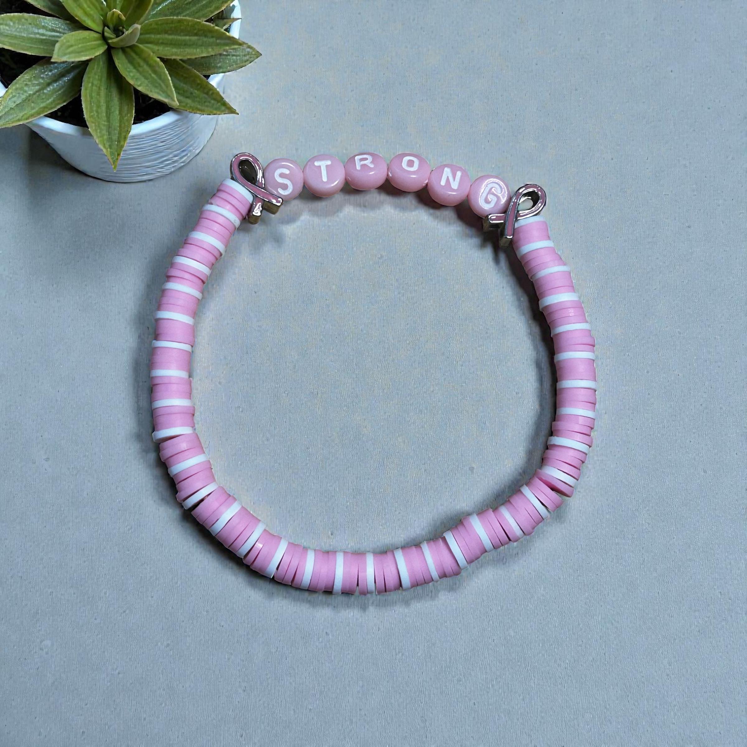Handmade breast cancer heshi beaded bracelets with pink ribbon spacers. Fits comfortably. Size shown in pictures is 7 inches. Willing to personalize. Perfect way to spread breast cancer awareness!