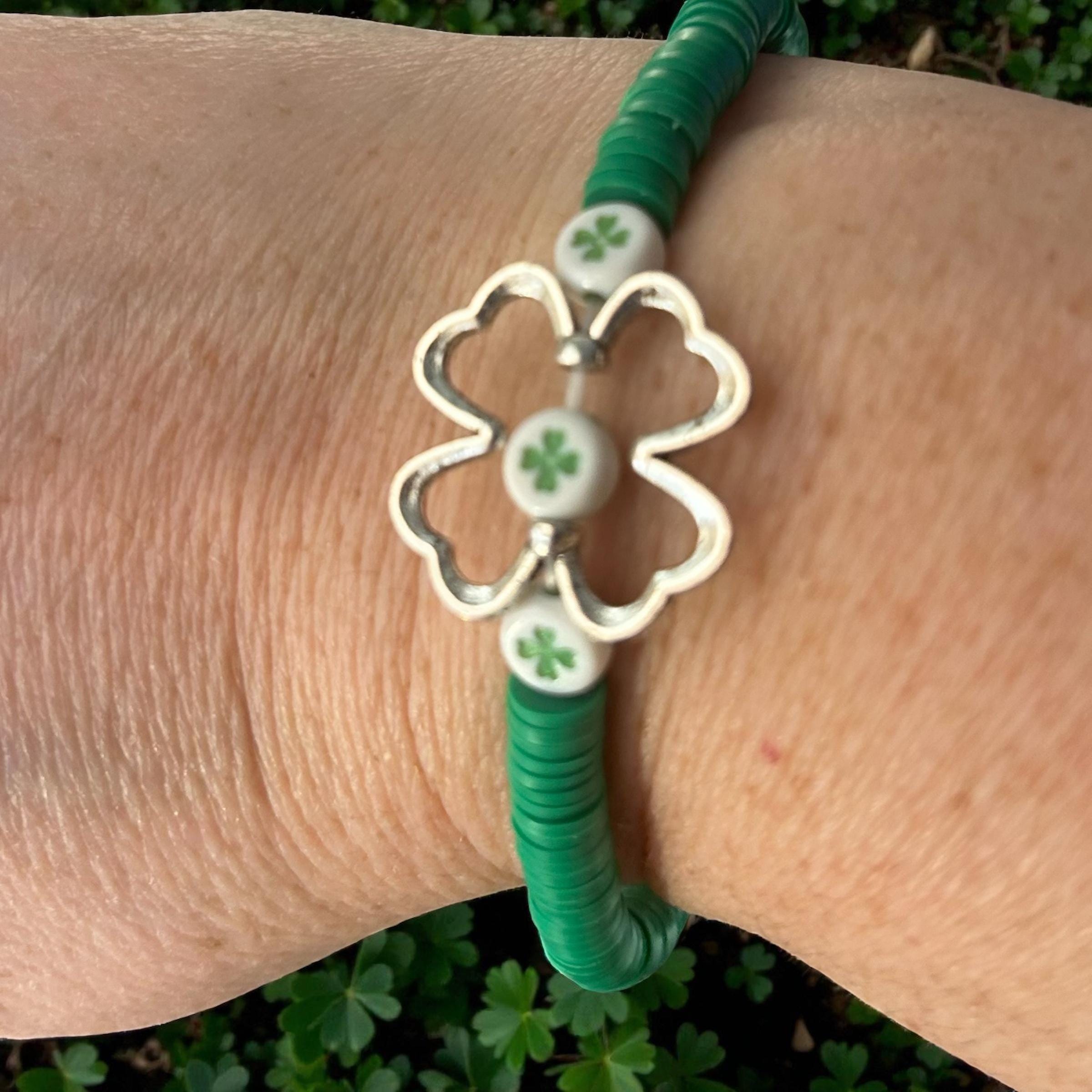Comfortable cute loose fit shamrock bracelet!! Perfect for that St. Patrick’s Day celebration!*gently handle bracelet*do not stretch or pull bracelet*roll bracelet on and off wrist